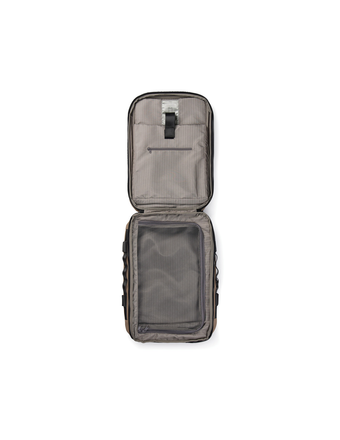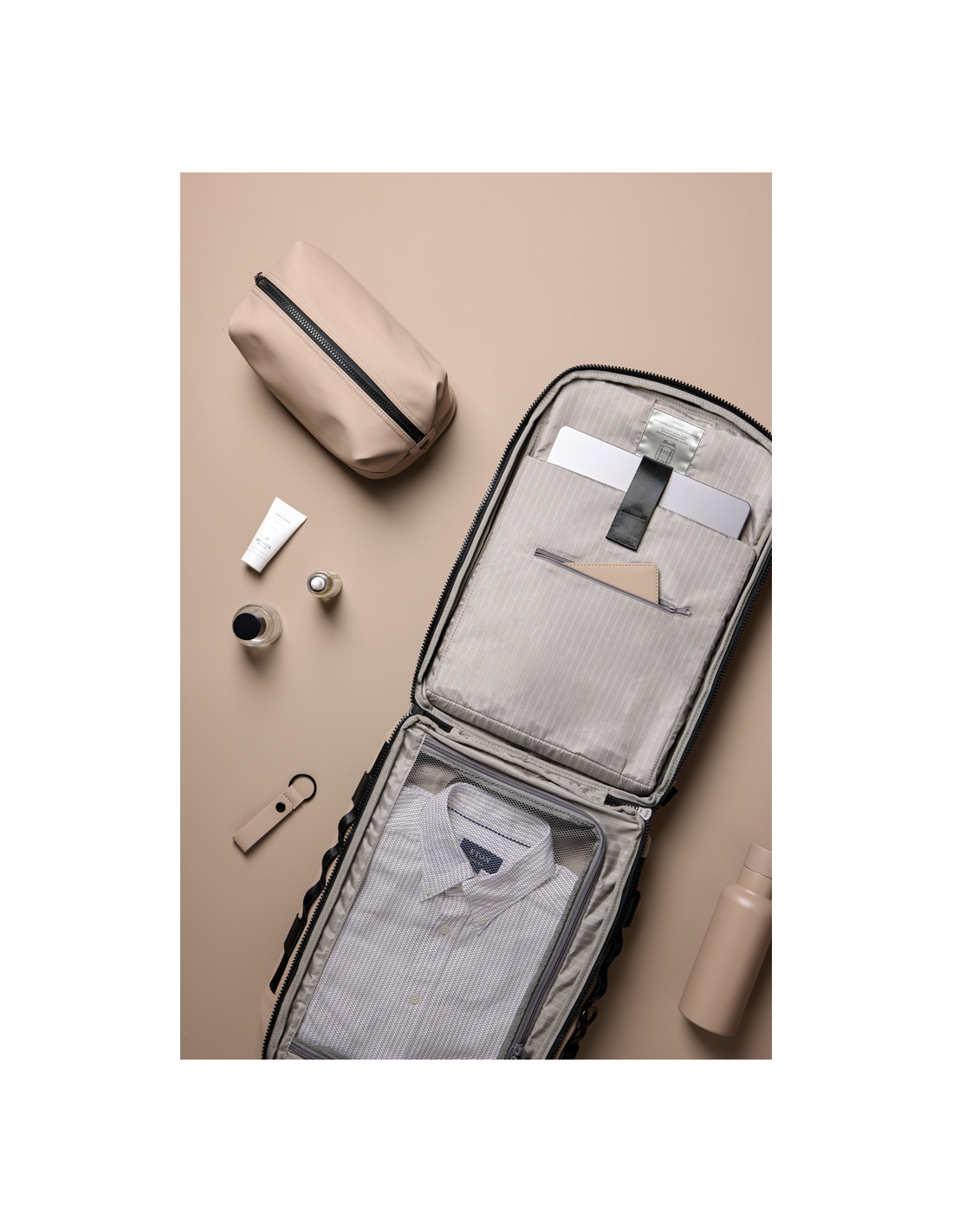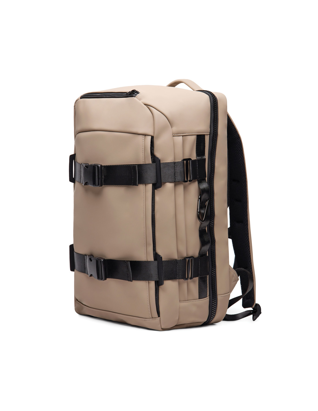 The ultimate companion for your adventures. Crafted with partly RCS certified recycled polyester. The exterior features a sleek PU finish, with mesh backing on the shoulder straps and back for maximum comfort. Designed for convenience, the bag can be fully opened for easy access. With multiple smart features, it offers a laptop compartment, two exterior pockets and a roomy mesh section inside to keep your gear organised. A sturdy top handle and a carabiner to secure smaller items. The clever strap at the back allows easy attachment to a trolley bag. A side zipper offers convenient access to the main mesh compartment. This is the ideal backpack for both daily commutes and weekend adventures. Certified by RCS (Recycled Claim Standard), RCS certification guarantees that the entire supply chain of recycled materials is certified. The total recycled content is based on the overall product weight. This product contains 16% RCS certified recycled polyester.